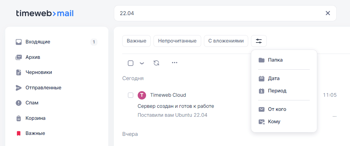 "ТАЙМВЭБ ПОЧТА" - веб-интерфейс для работы с электронной почтой: отправка и получение писем, управление контактами, настройка фильтров. ПО не требует установки, достаточно авторизации через почтовый ящик. Для доступа необходим интернет-браузер и доступ в сеть Интернет.